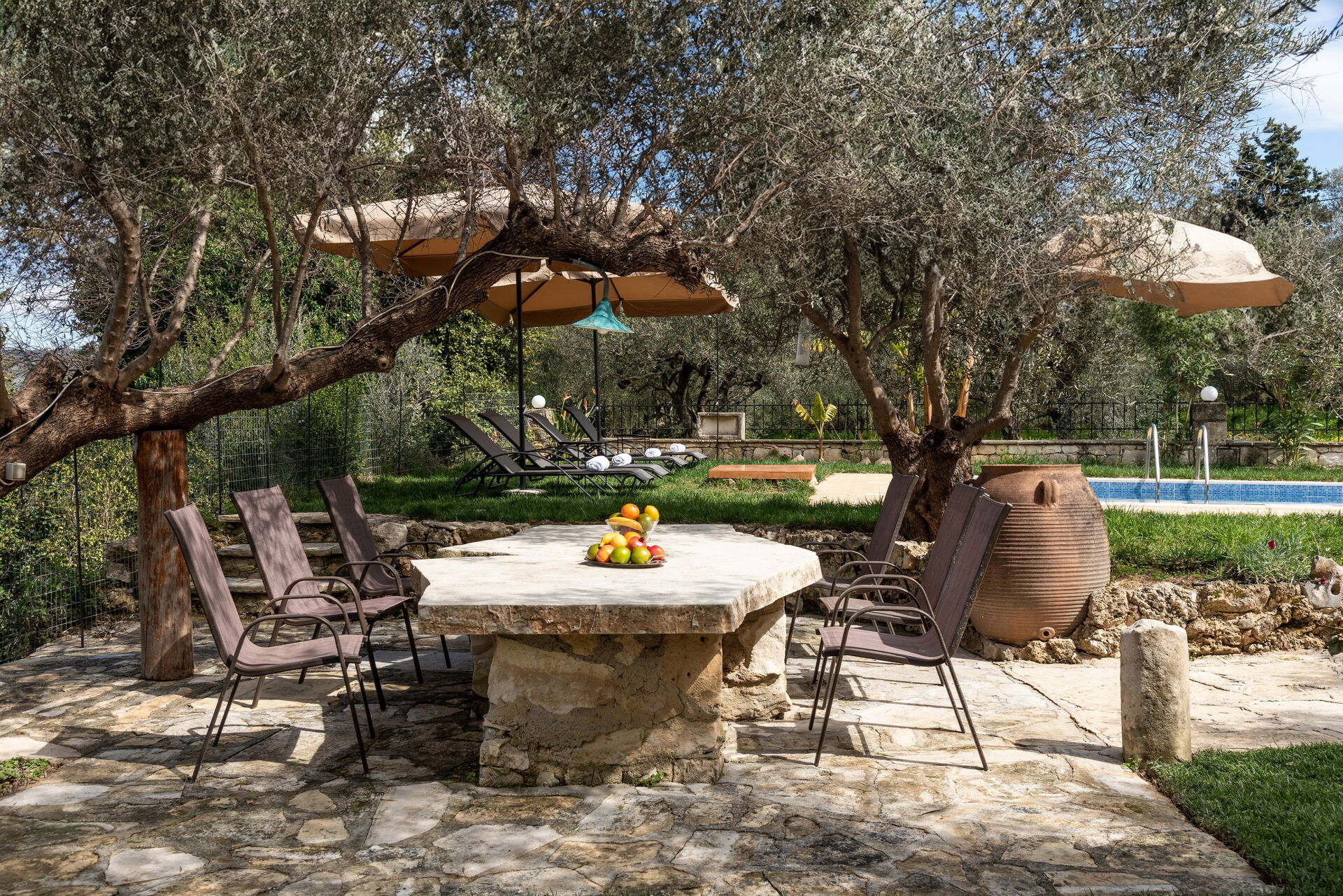Beautiful secluded villa. The garden especially was fantastic with a variety of fruit trees which you could pick fresh from. Trees creating areas of shade around the pool. Good facilities within the villa with everything we needed.