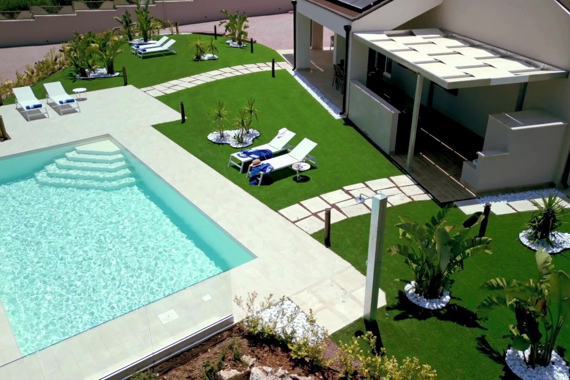 La villa è circondata da un ampio giardino che ospita una piscina privata e una veranda attrezzata per mangiare all’aperto rilassandosi nelle giornate estive.
